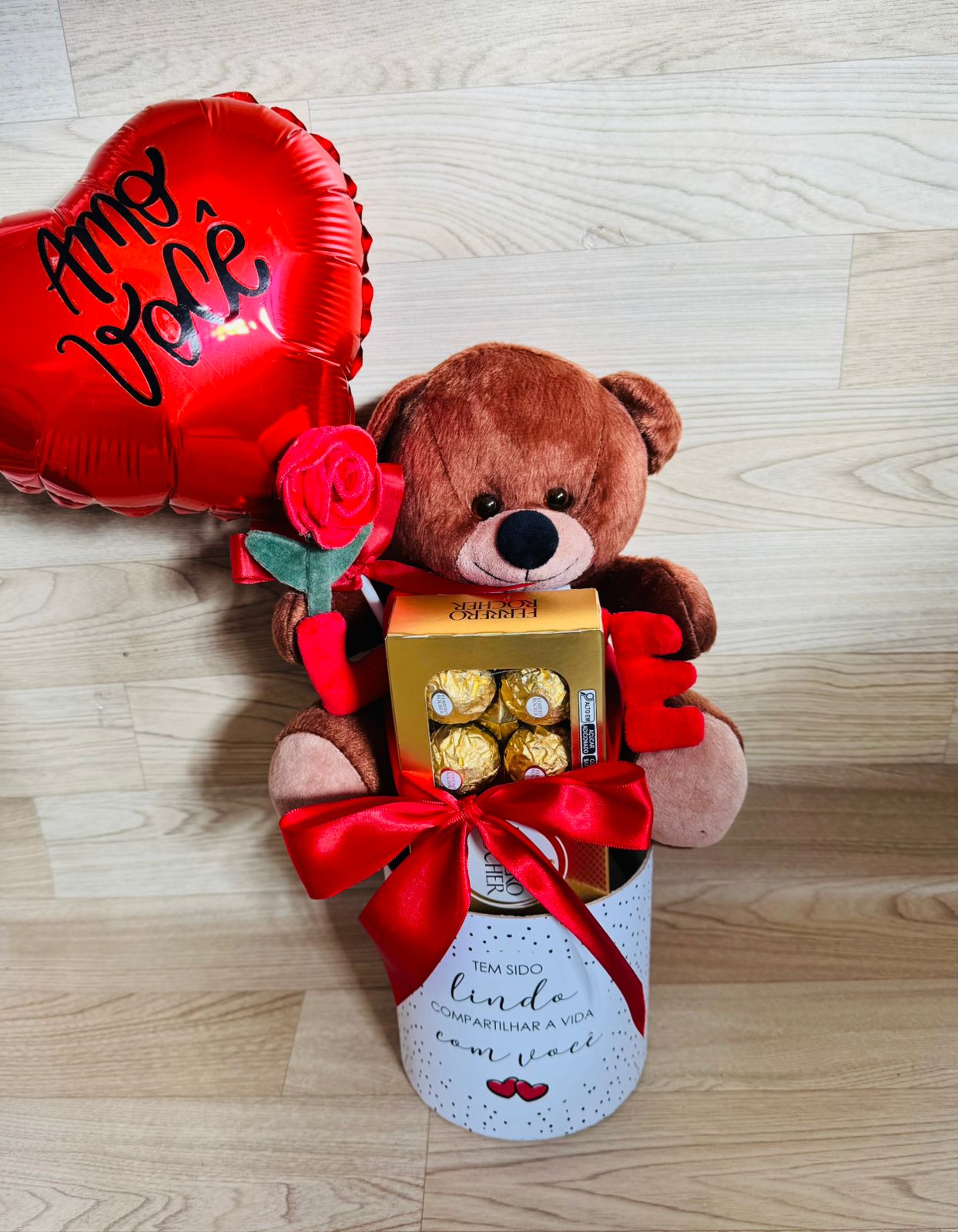 URSO PREMIUM LOVE COM FLOR (MARROM OU BEGE)