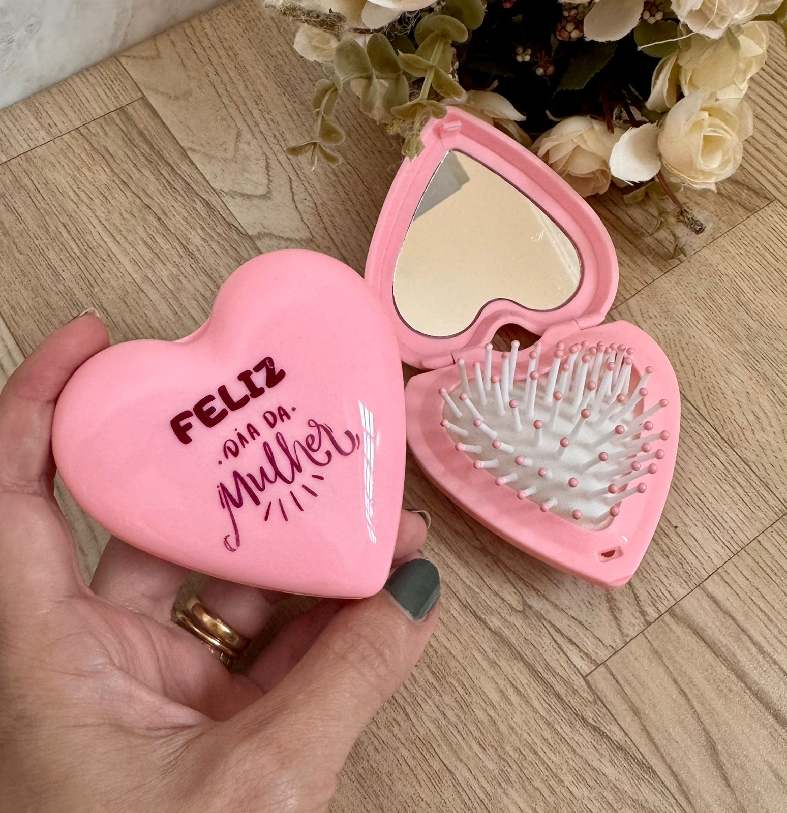 Funcional, a escova com espelho é ideal para quem busca praticidade no dia a dia. Compacta, é feita em plástico e possui abertura vertical, liberando as cerdas ao pressionar o verso. Personalização TRANSFER