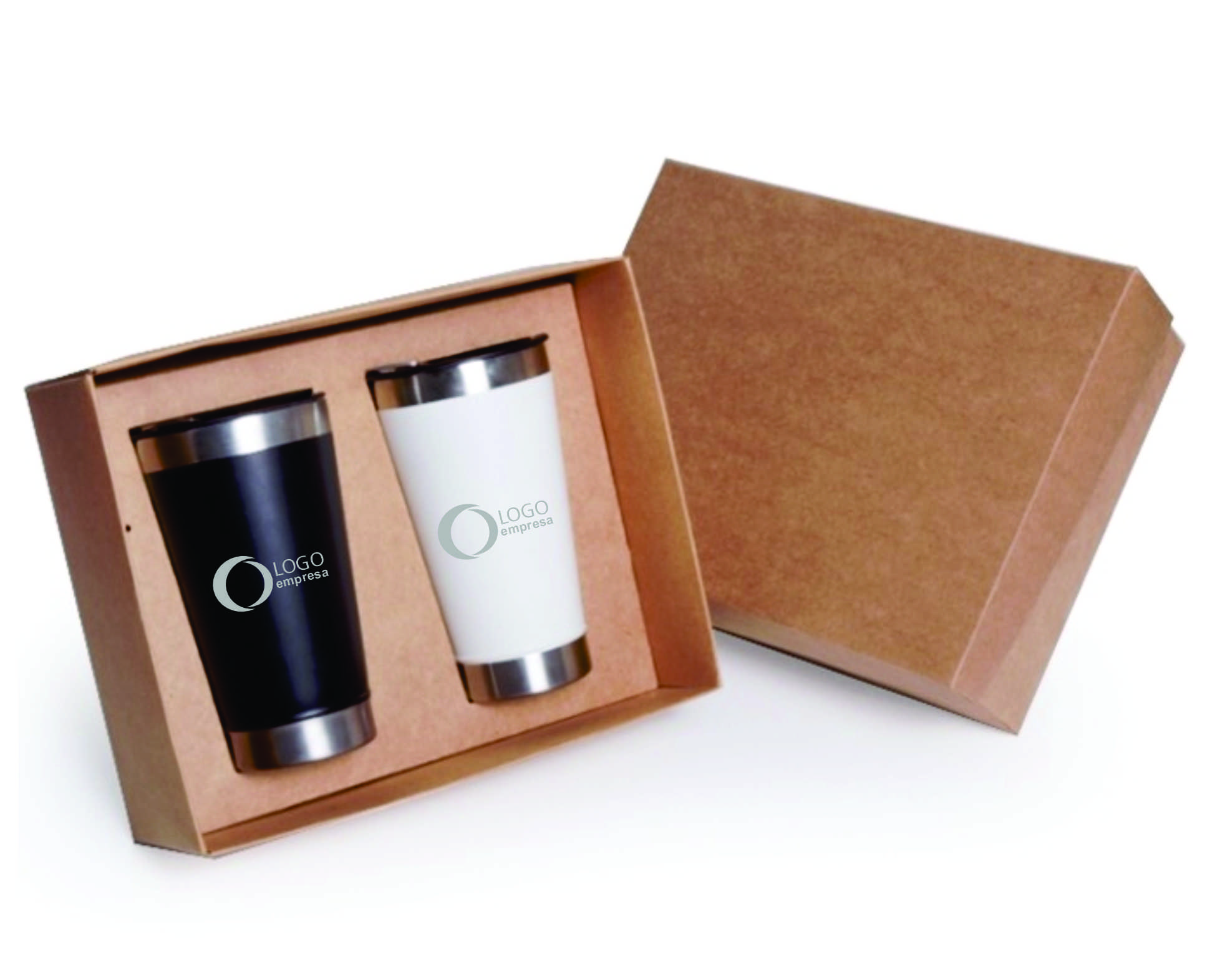ACOMPANHA CAIXA COM 2 COPOS TERMICOS TIPO STANLEY (SEM LOGO DA MARCA) COM GRVAÇÃO A LASER