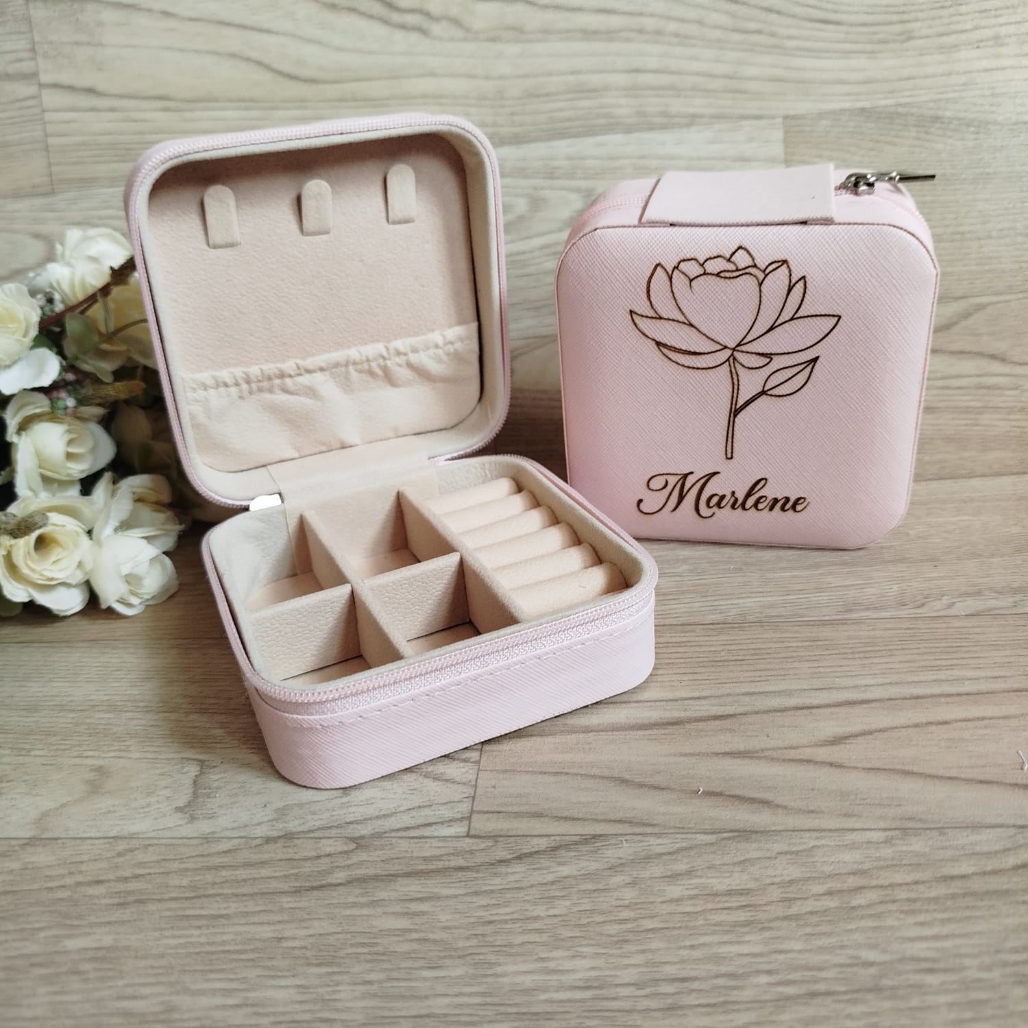 * Porta joias para viagem super compacto, com suas divisórias removíveis.